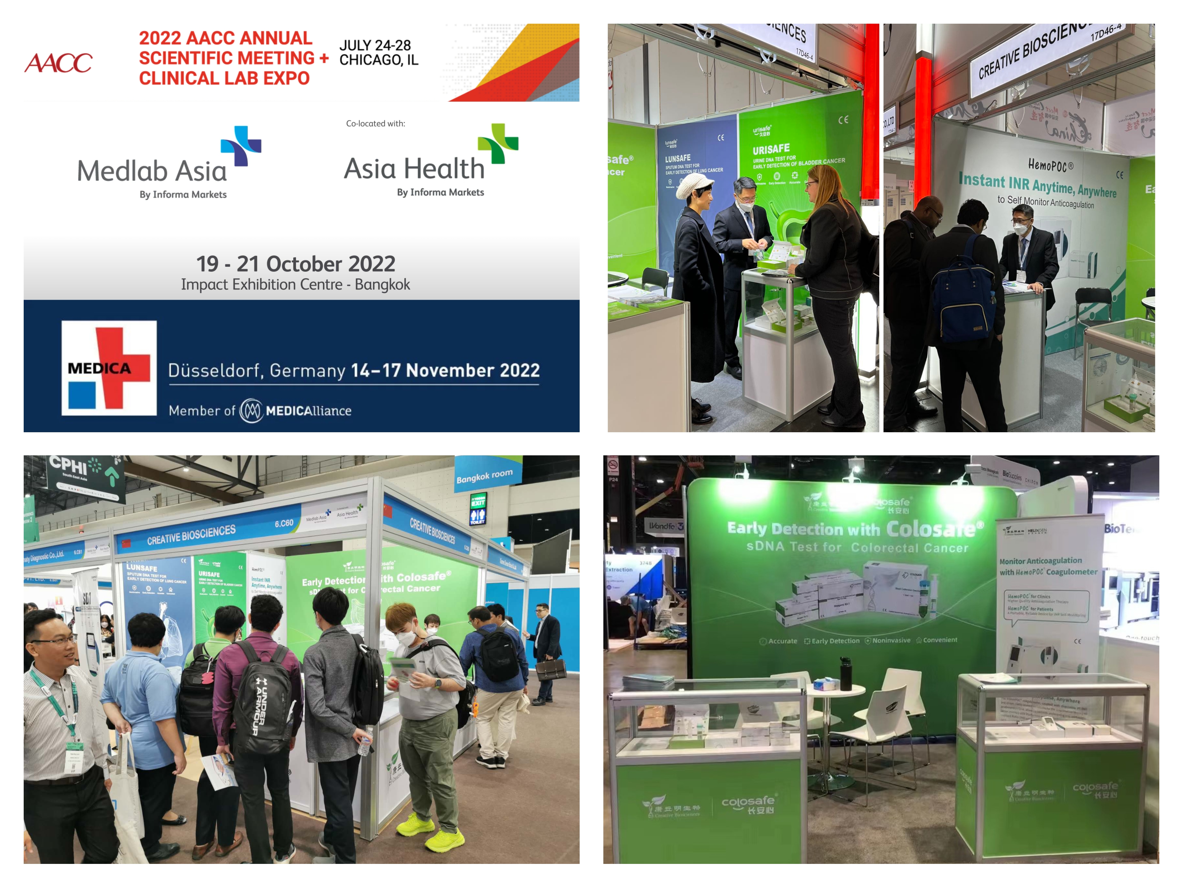 2022年,康立明生物積極拓展海外市場(chǎng),持續(xù)發(fā)力,陸續(xù)參加了7月美國(guó)芝加哥的第74屆美國(guó)臨床化學(xué)年會(huì)暨臨床實(shí)驗(yàn)醫(yī)學(xué)博覽會(huì)(AACC Annual Meeting and Clinical Lab Expo)、10月泰國(guó)曼谷的Medlab亞洲和亞洲健康 2022 (Medlab Asia & Asia Health 2022)、11月德國(guó)杜塞爾多夫的2022年國(guó)際醫(yī)院及醫(yī)療設(shè)備用品展覽會(huì)(MEDICA 2022)等國(guó)際知名的醫(yī)療行業(yè)盛會(huì)。